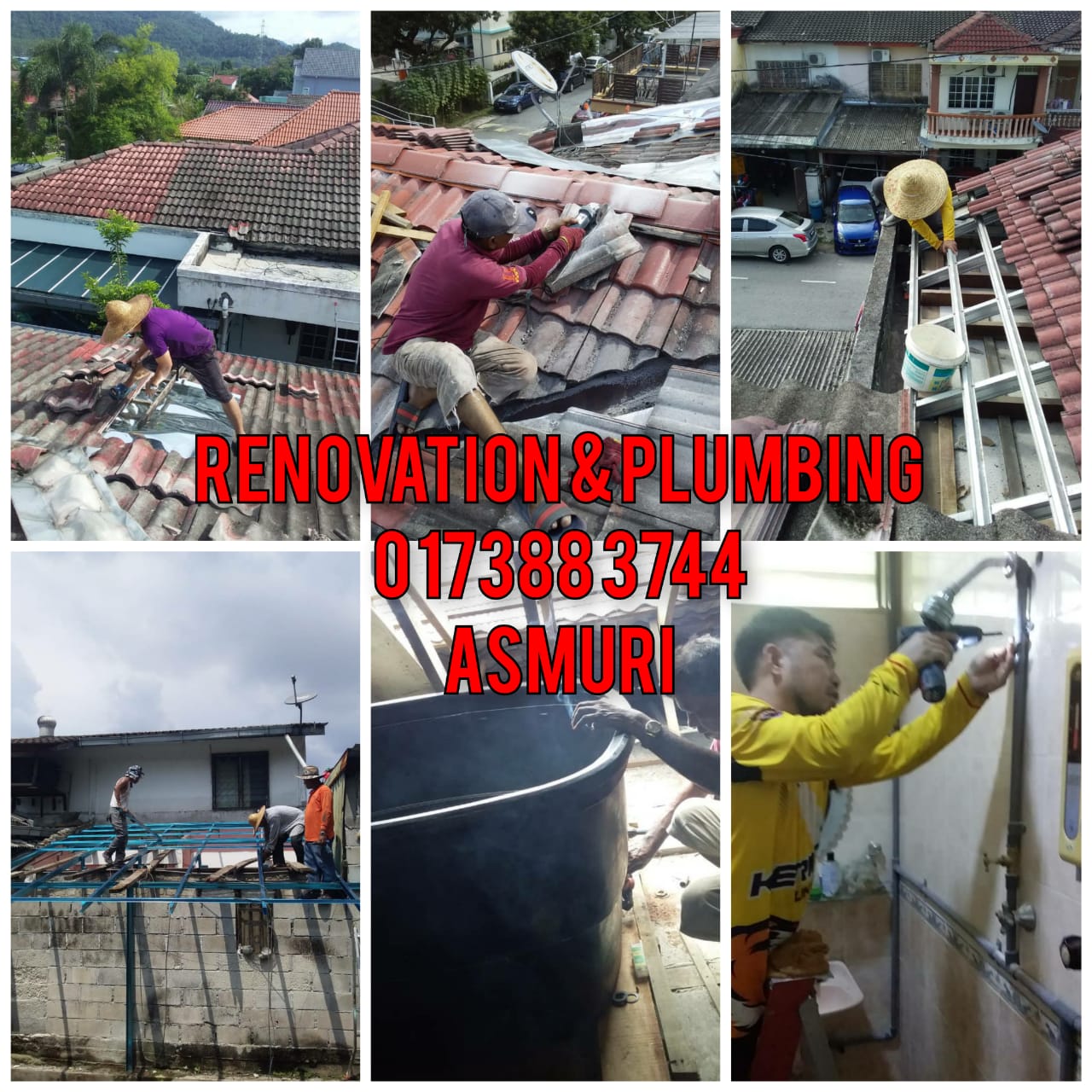 ASMURI RENOVATION & PLUMBING W W W WASAP MY/ +60173883744 UBAHSUAI RUMAH &KERJA KERJA PAIP MEMBAIKI BUMBUNG BOCOR PASANG TANGKI AIR & MENCUCI TANGKI AIR MENGECAT RUMAH MEMBAIKI TANDAS TERSUMBAT PASANG PINTU & LAIN LAIN PUAN PUAN &TUAN TUAN BOLEH HUBUNGI KAMI NOMOR INI KAMI BERSEDIA MEMBANTU PUAN TUAN
