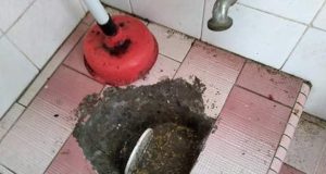 Plumber, Tandas sumbat Area Keramat Hujung. (Mohd Jabar/0193233272).