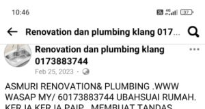 0173119302 renovation Dan plumbing Ukay Bistari